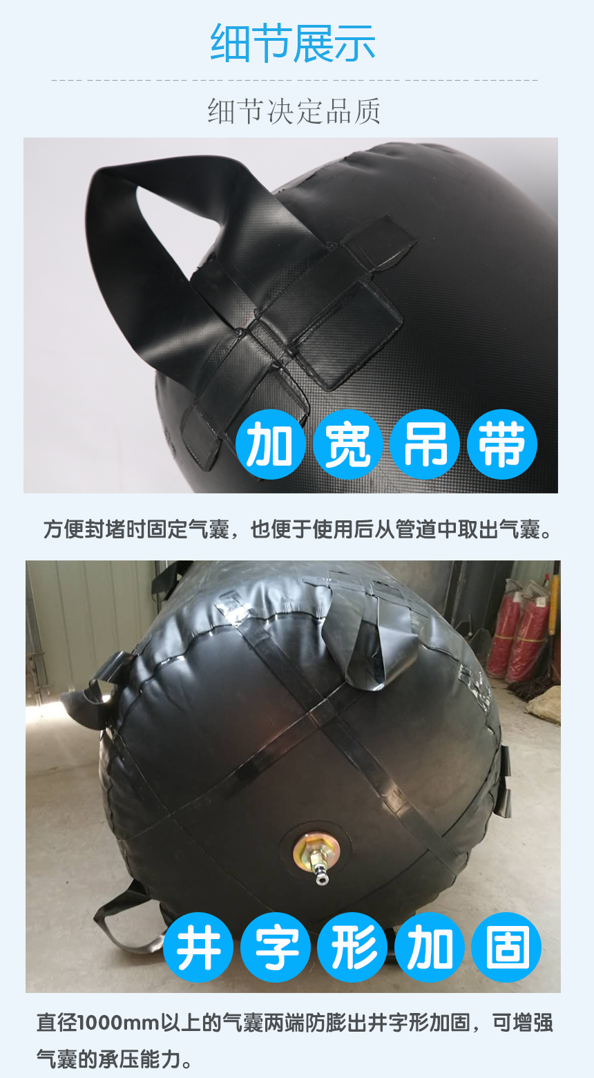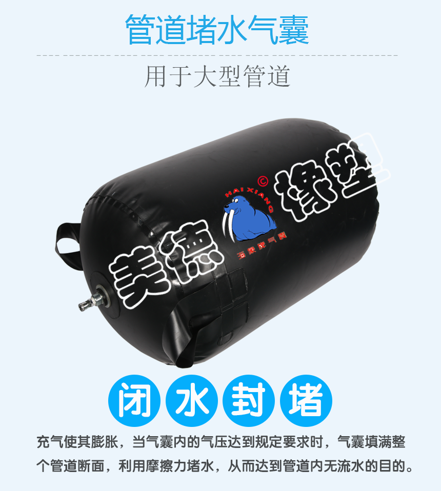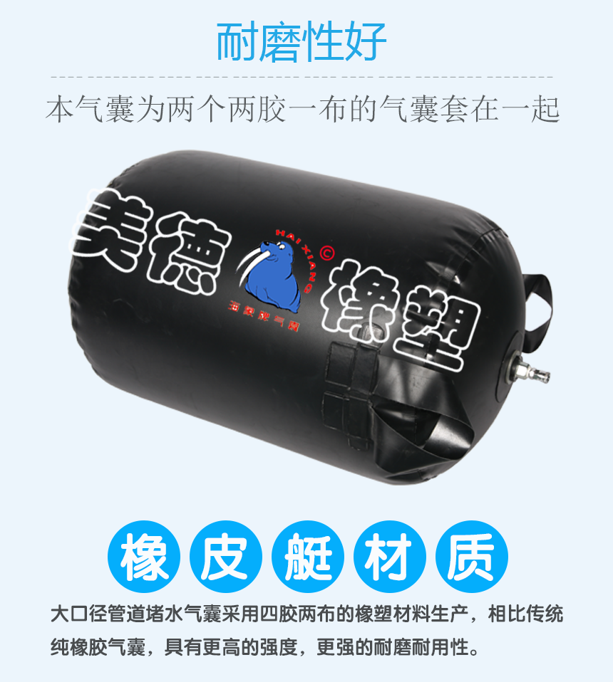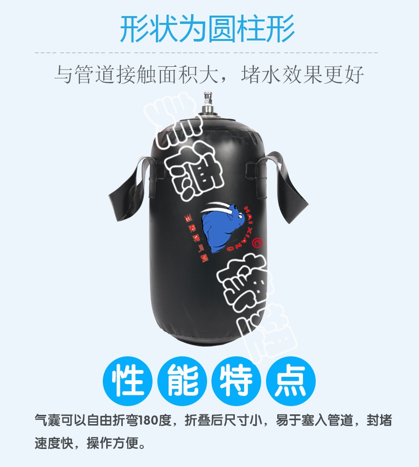 封堵气囊又叫堵水气囊,闭水堵。封堵气囊是采用橡胶与纤维加强层硫化后制成。既有很好的抗胀强度,又有弹性、柔韧性,封堵气囊能满足在各种工作条件下的使用。且操作简单,具有良好的耐老化性能,使用寿命长。